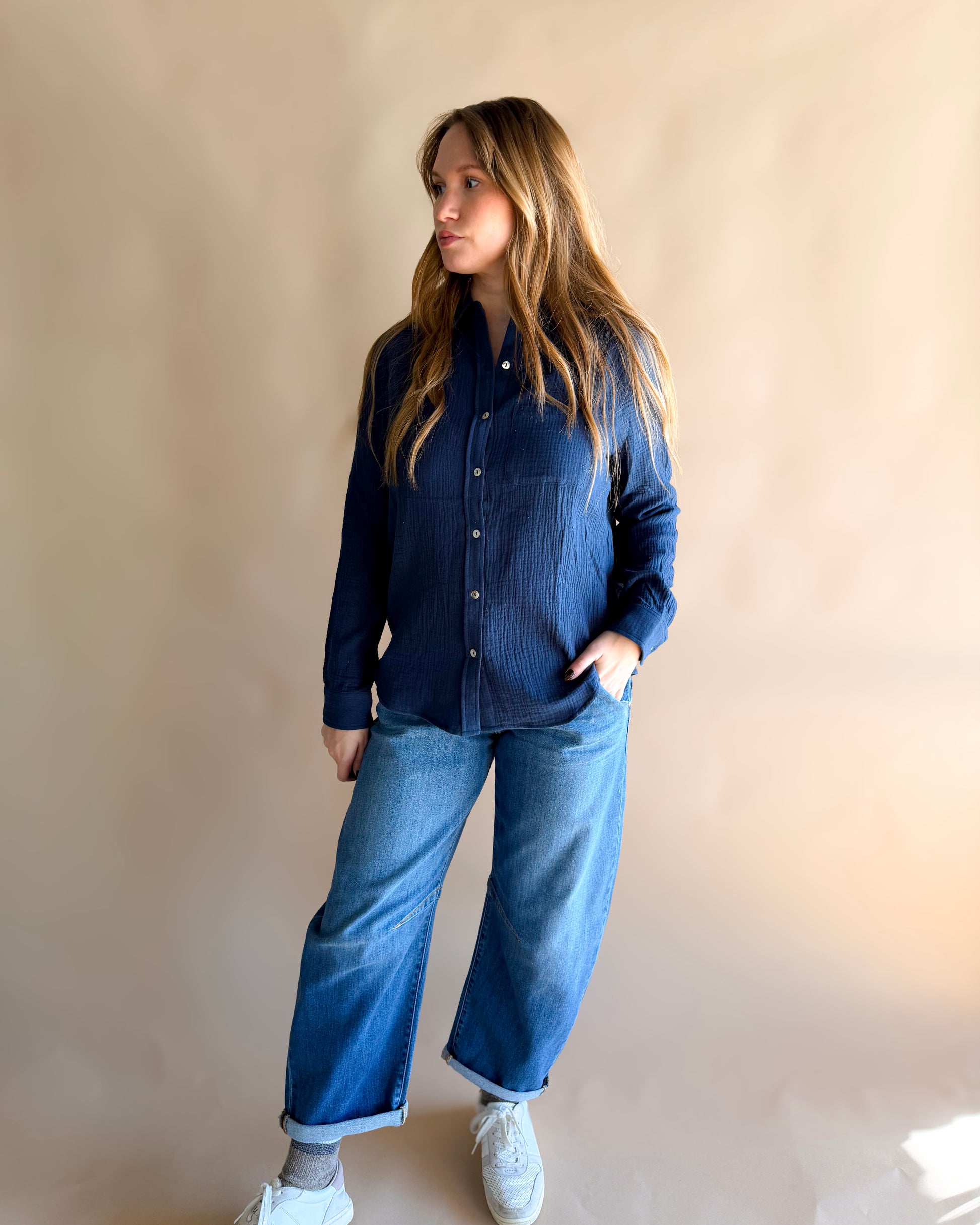 The True North Woven Shirt is the definition of an everyday essential. Made from 100% cotton, this breathable woven button down offers a relaxed, easy fit that moves with you from weekday errands to weekend plans. Wear it buttoned up for a polished look or layered open over your favorite tee for that effortless, lived-in feel.